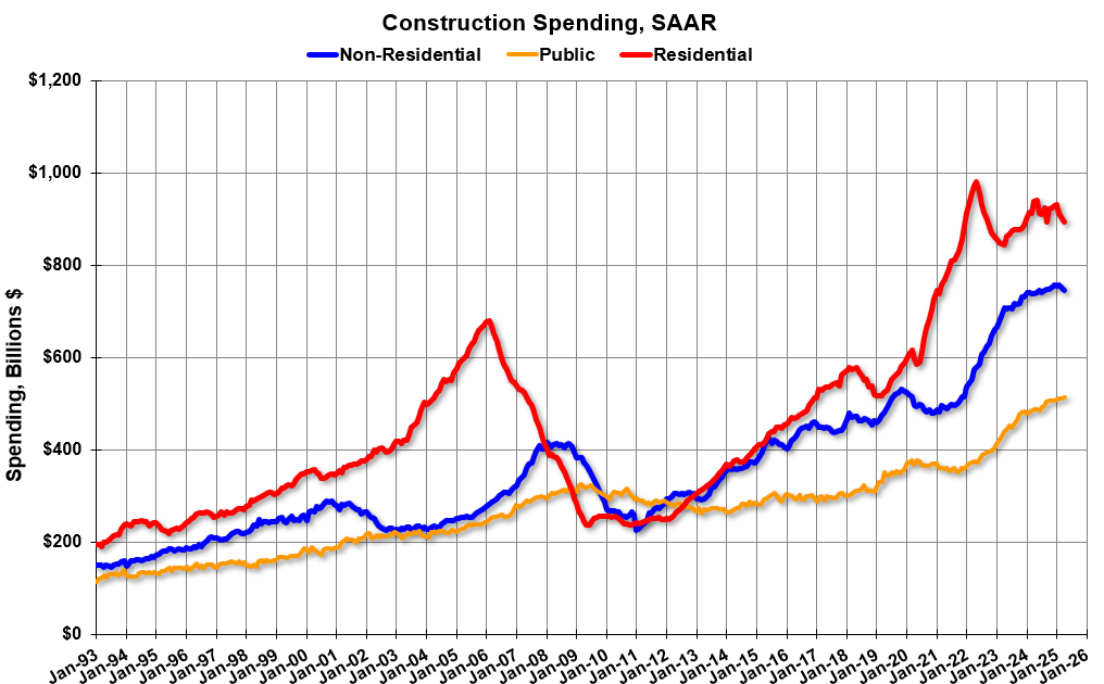 From the Census Bureau reported that overall construction spending decreased: Construction spending during April 2025 was estimated at a s…